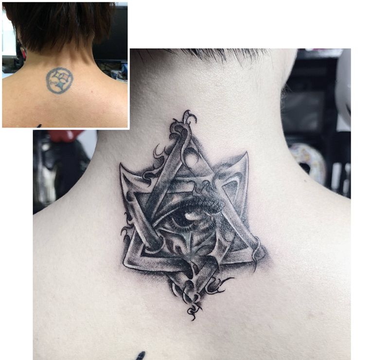 当前位置: 首页 >广东省广州市纹身店-泰塔凸纹身馆纹身图案>遮盖纹身图片_颈部欧美写实眼睛藤条遮盖纹身图案