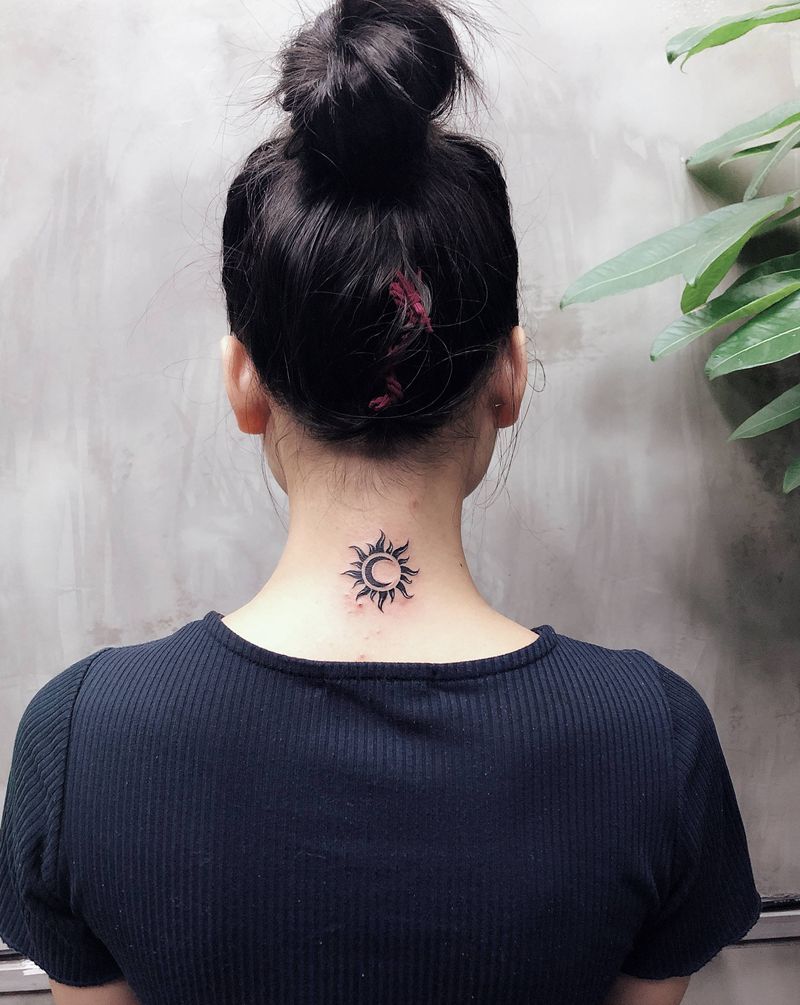 小图腾纹身图片_颈部几何图腾太阳图腾几何纹身图案