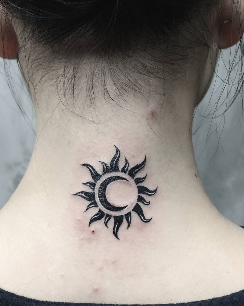 小图腾纹身图片_颈部几何图腾太阳图腾几何纹身图案