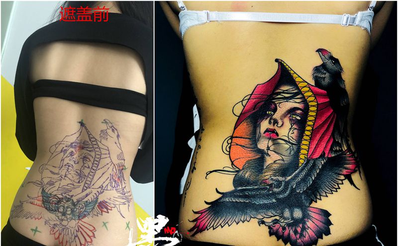 #遮盖纹身#过程纹身图片_背部New School欧美写实纹身图案