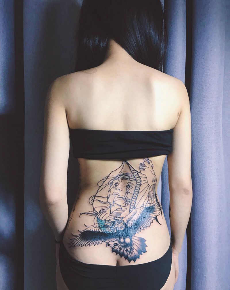 当前位置: 首页 >广东省广州市纹身店-墨刺青工作室纹身图案>#遮盖纹身#过程纹身图片_背部New School欧美写实纹身图案