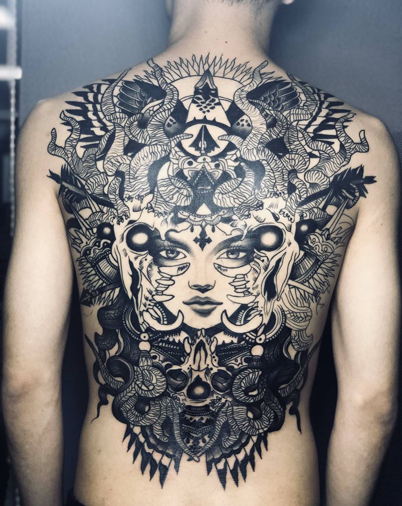 满背纹身的过程系列:1⃣️纹身图片_背部欧美写实New School纹身图案