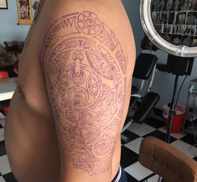 • 纹身吧推荐的披肩图腾半胛纹身图案作品展示
