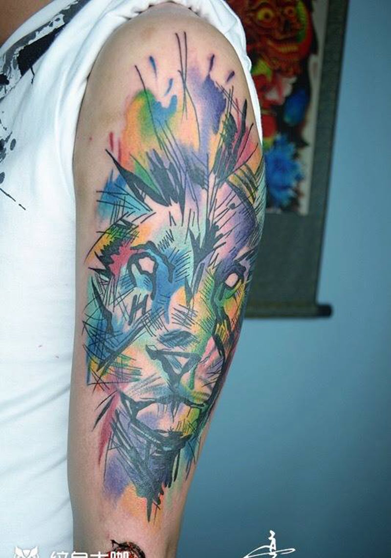 当前位置: 首页 >广东省广州市纹身店-墨刺青工作室纹身图案>水彩狮子纹身图片_成品手臂欧美动物纹身图案