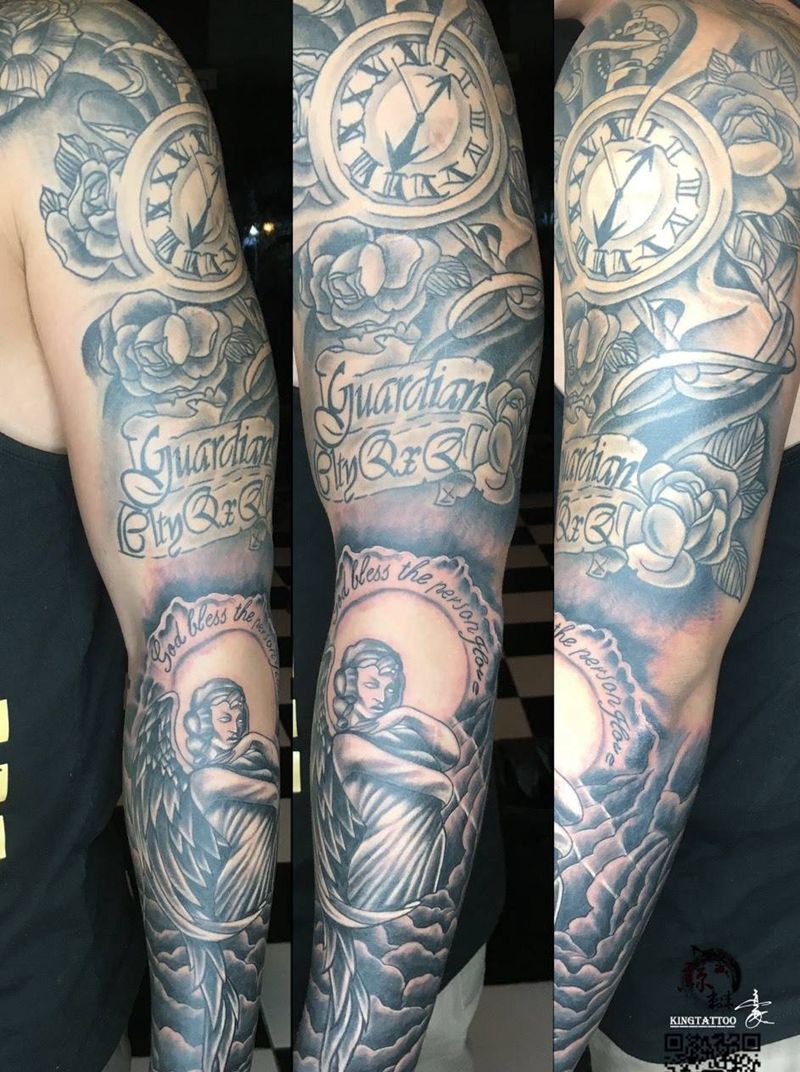 黑灰全臂作品纹身图片_成品手臂广州花都花都区纹身图案