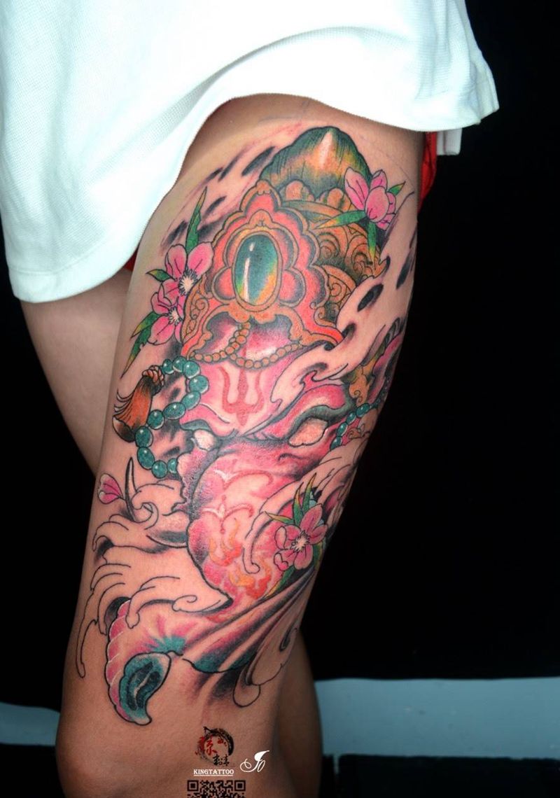 • T网红王老大花腿龙纹身图片_腿部新传统纹身图案