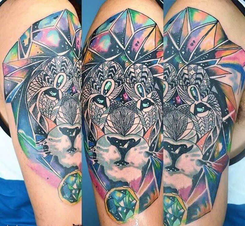 色彩斑斓,过年期间有人喜欢颜色纹身,可以快来约我纹身图片_水彩广州花都几何动物成品手臂腰部臀部胸部纹身图案