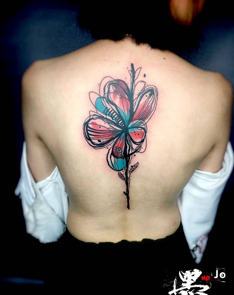 jojo作品喜欢她风格可以预约纹身图片_成品背部腿部手臂手部欧美花都广州水彩动物纹身图案
