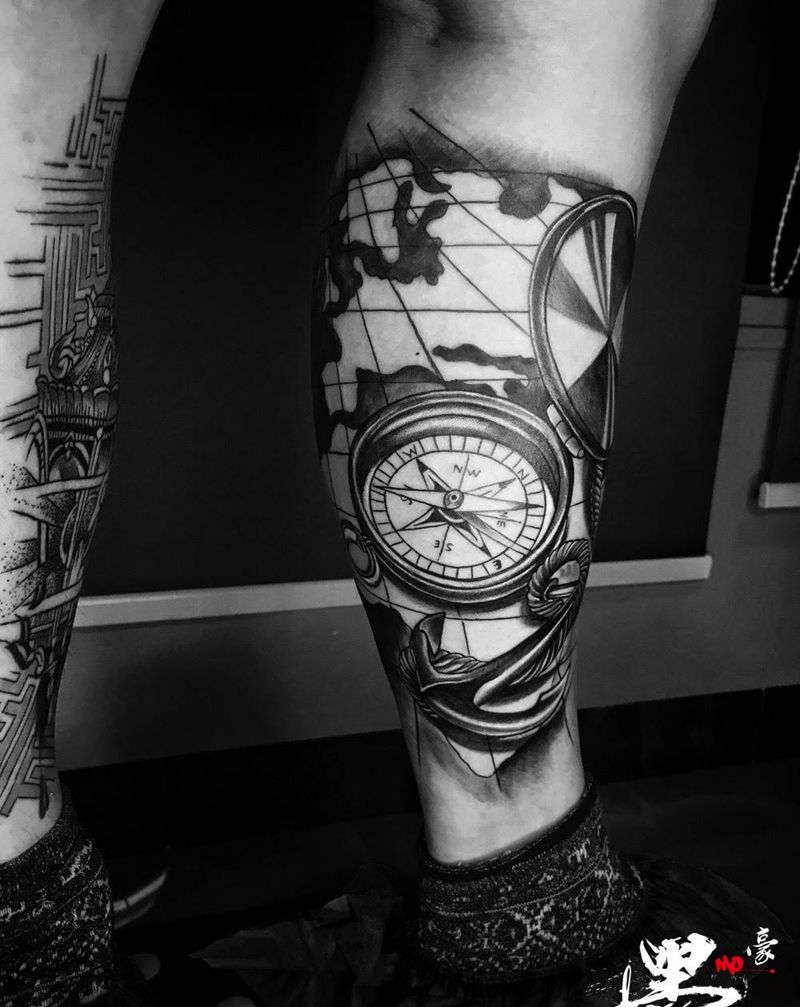 • T包小腿吹火男+阿多福纹身图片_腿部老传统新传统吹火男阿