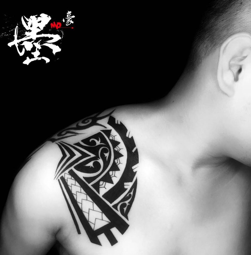 • 纹身吧推荐的披肩图腾半胛纹身图案作品展示