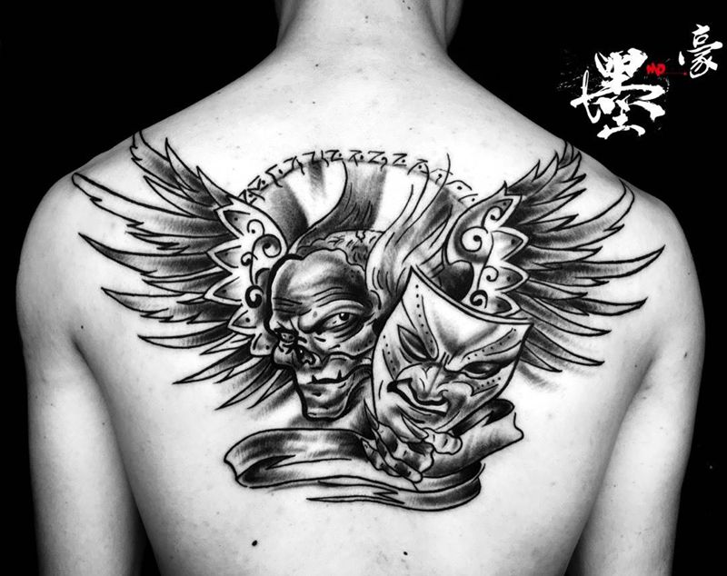 黑灰满背纹身图案