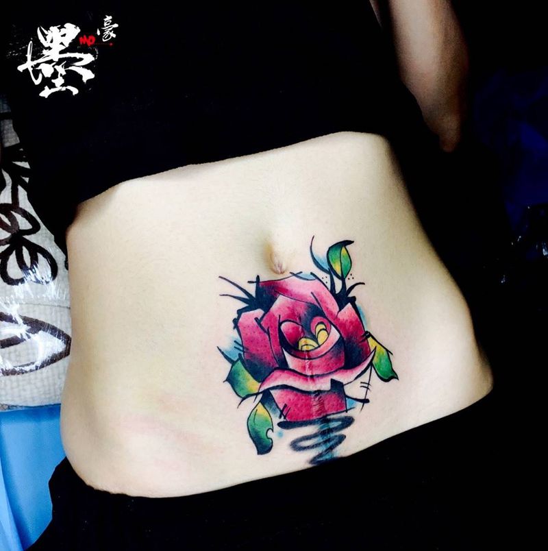 • T关于私处得爱!纹身图片_成品腹部清新字符图腾纹身图案
