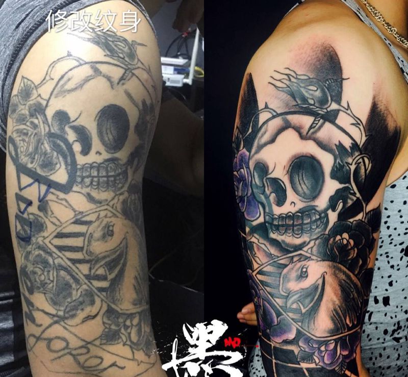 #作品#遮盖纹身##遮盖疤痕#纹身图片_成品胸部手部手臂花都广州纹身图案
