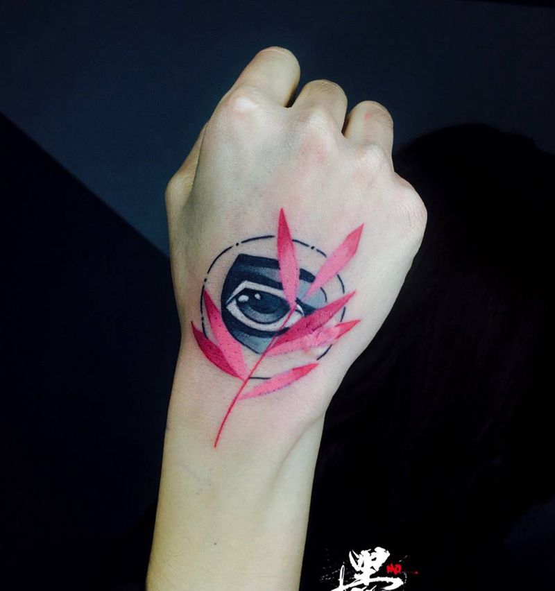 • 手背潮流时尚的玫瑰花眼睛纹身图案