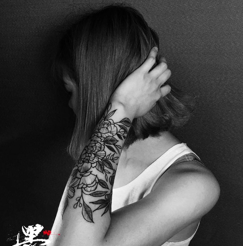 正是花開燦爛的時候,女孩说穿起工衣就是帅纹身图片_成品手稿手臂手部清新植物花都广州纹身图案