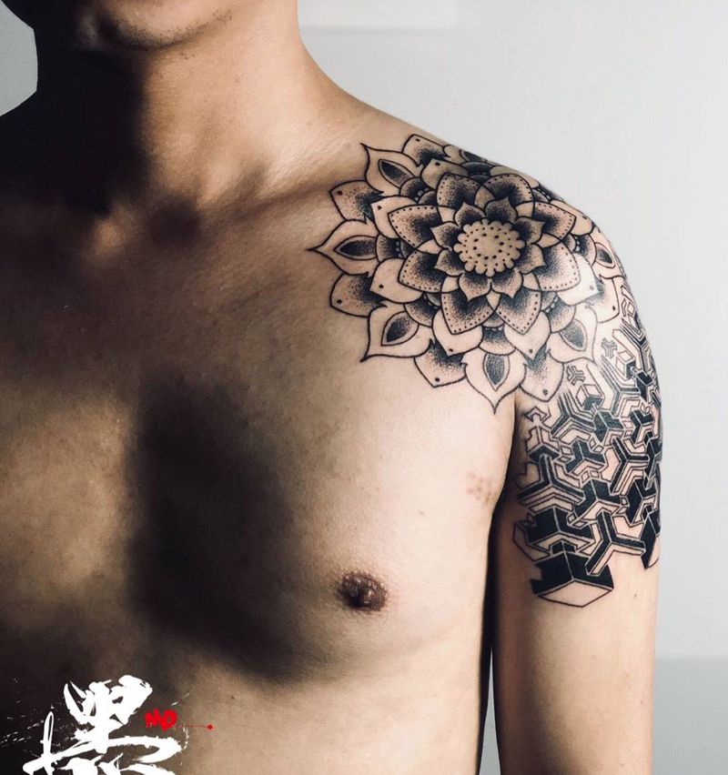 #樊花##几何点刺#纹身图片_成品插画手臂几何花都广州纹身图案