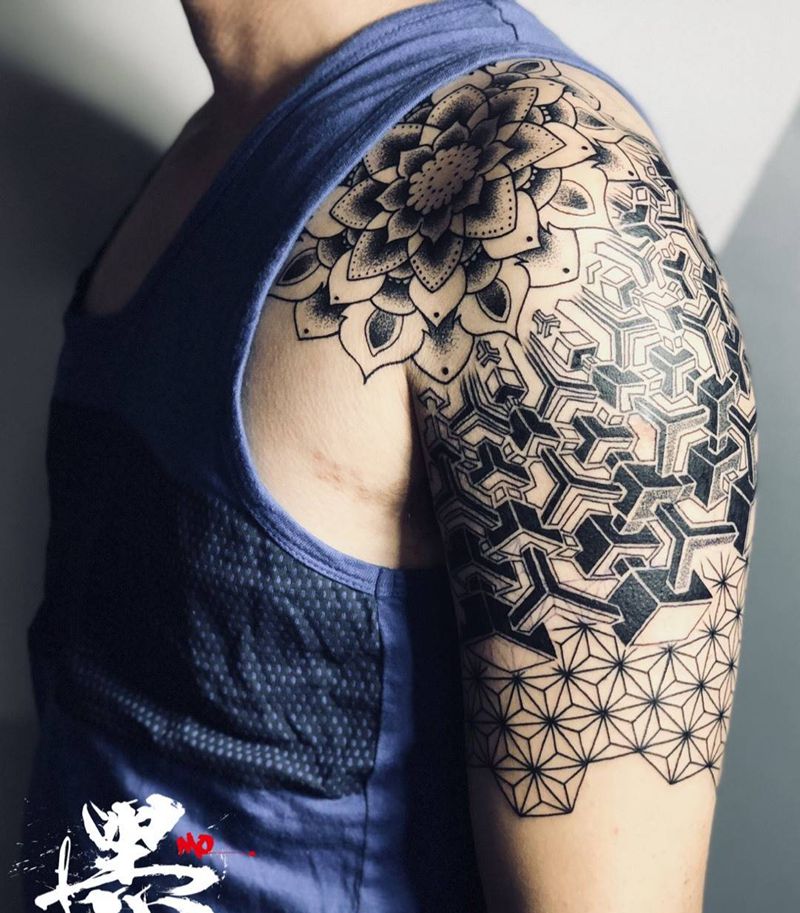 #樊花##几何点刺#纹身图片_成品插画手臂几何花都广州纹身图案