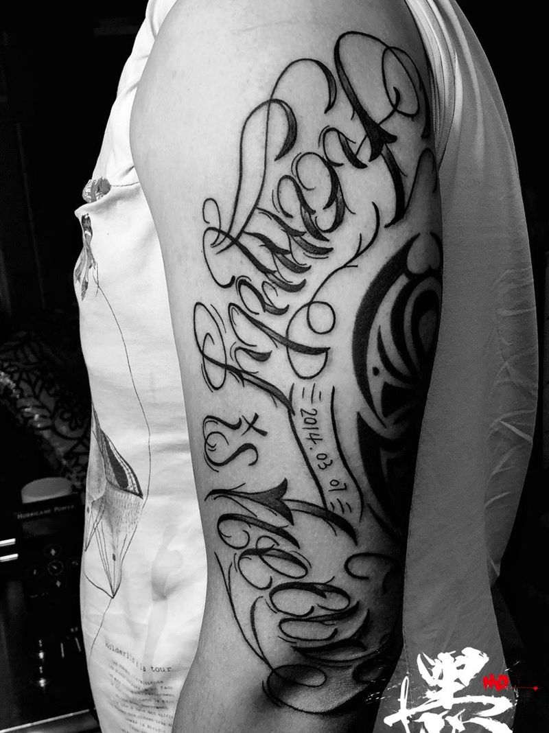 • T家庭图,一家四口生日纪念!纹身图片_手臂纹身图案