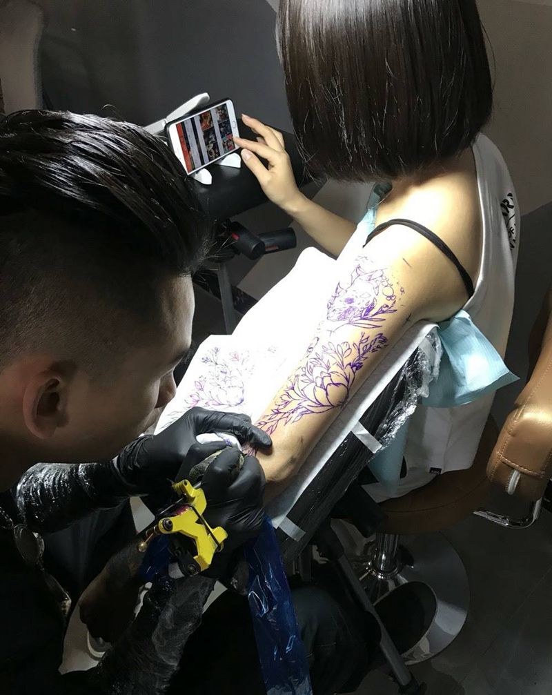 花臂拼接小图纹身图片_成品手臂动物花都广州遮盖纹身图案