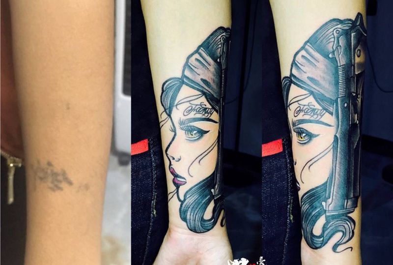 近期遮盖纹身纹身图片_成品腿部手臂欧美花都广州遮盖纹身图案