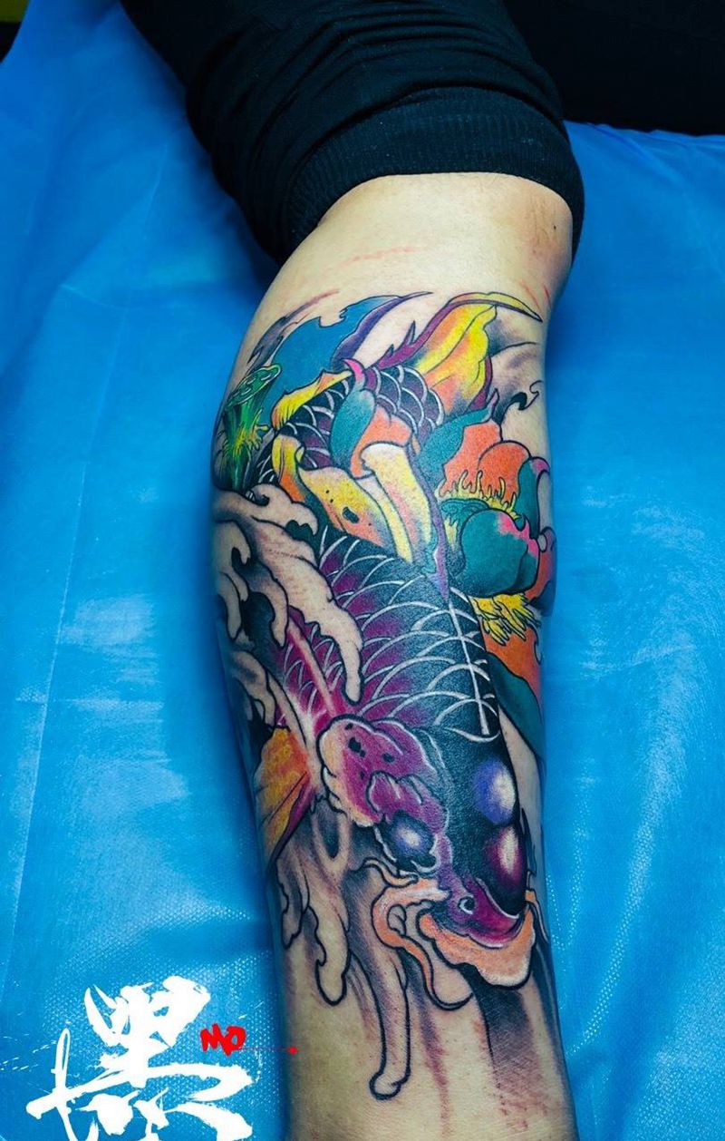 • T网红王老大花腿龙纹身图片_腿部新传统纹身图案