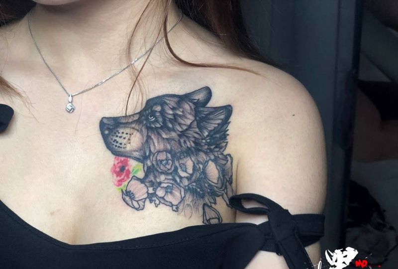 • 女性大花胸纹身_43张霸气漂亮的女性大花胸纹身图案作品