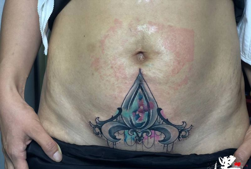• 时尚性感的腹部莲花纹身图案