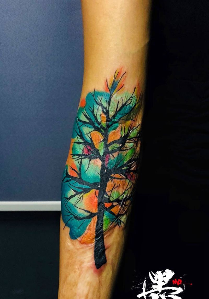 近期彩色作品纹身图片_胸部手臂水彩New School纹身图案
