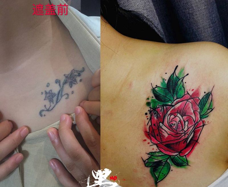 近期本人遮盖修改#纹身#作品纹身图片_胸部手臂New School水彩纹身图案