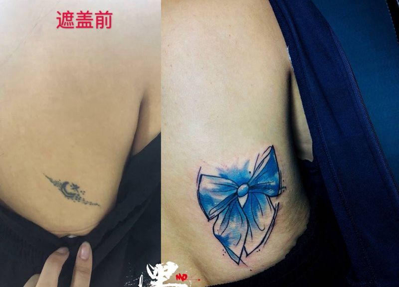 近期本人遮盖修改#纹身#作品纹身图片_胸部手臂New School水彩纹身图案