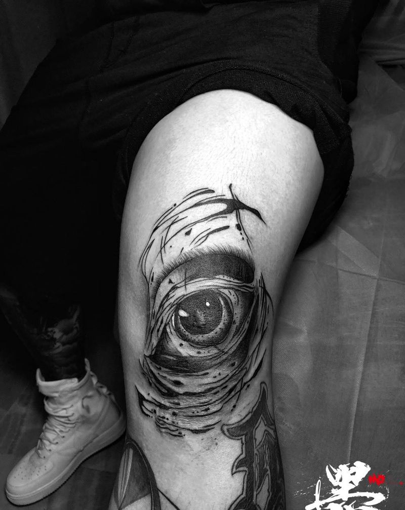 • T网红王老大花腿龙纹身图片_腿部新传统纹身图案
