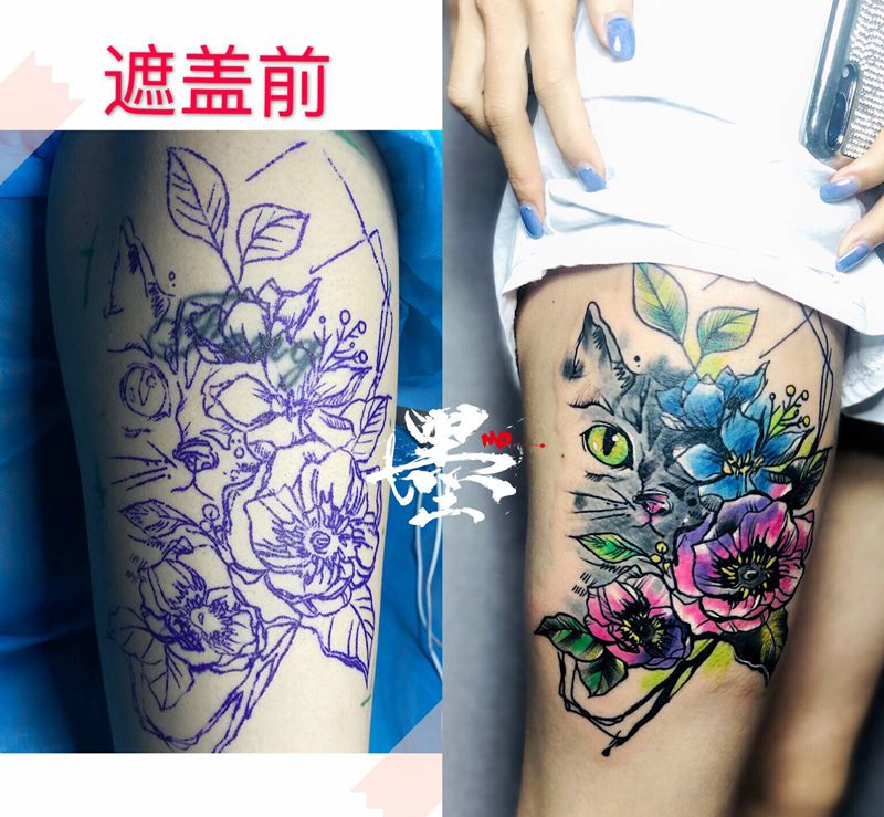 近期纹身遮盖作品纹身图片_手臂腿部水彩纹身图案