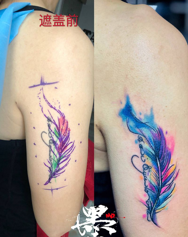 近期纹身遮盖作品纹身图片_手臂腿部水彩纹身图案