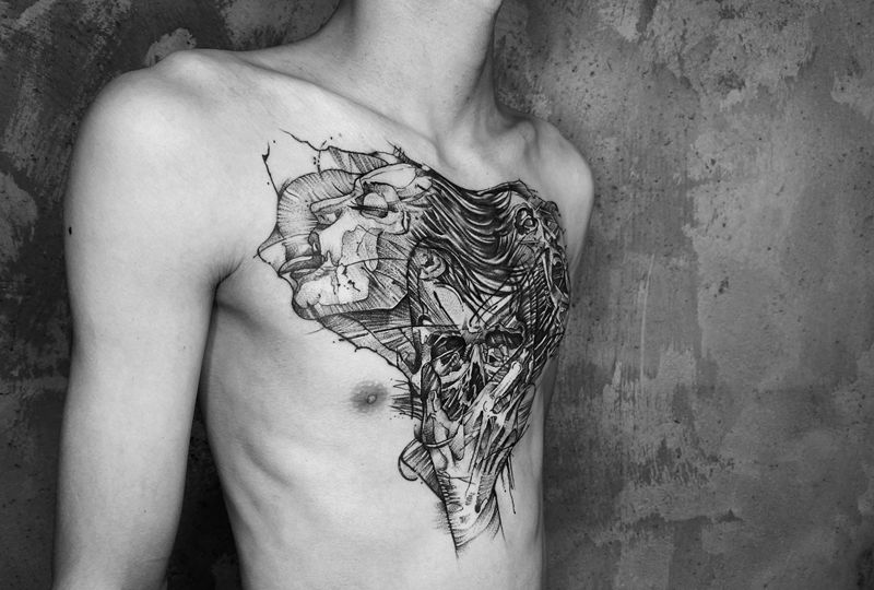 • 男性大花胸_42张优秀的男性大花胸纹身图案图片