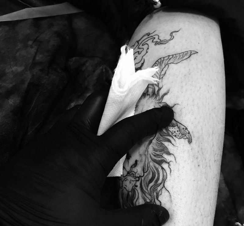 • T网红王老大花腿龙纹身图片_腿部新传统纹身图案