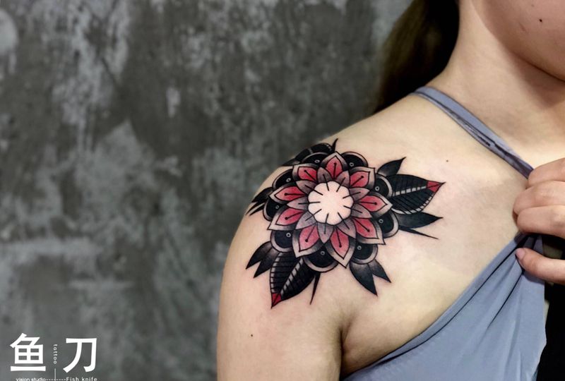 • 纹身吧推荐的披肩图腾半胛纹身图案作品展示