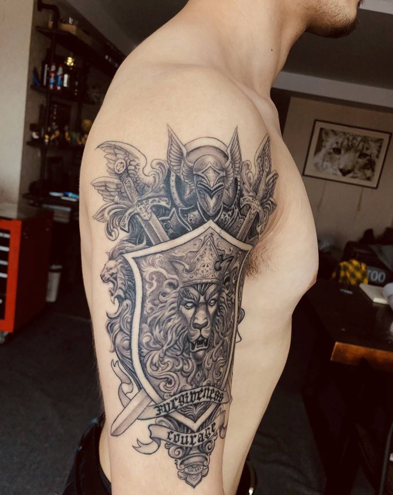 盾纹身图片_手部手臂新传统欧美写实纹身图案