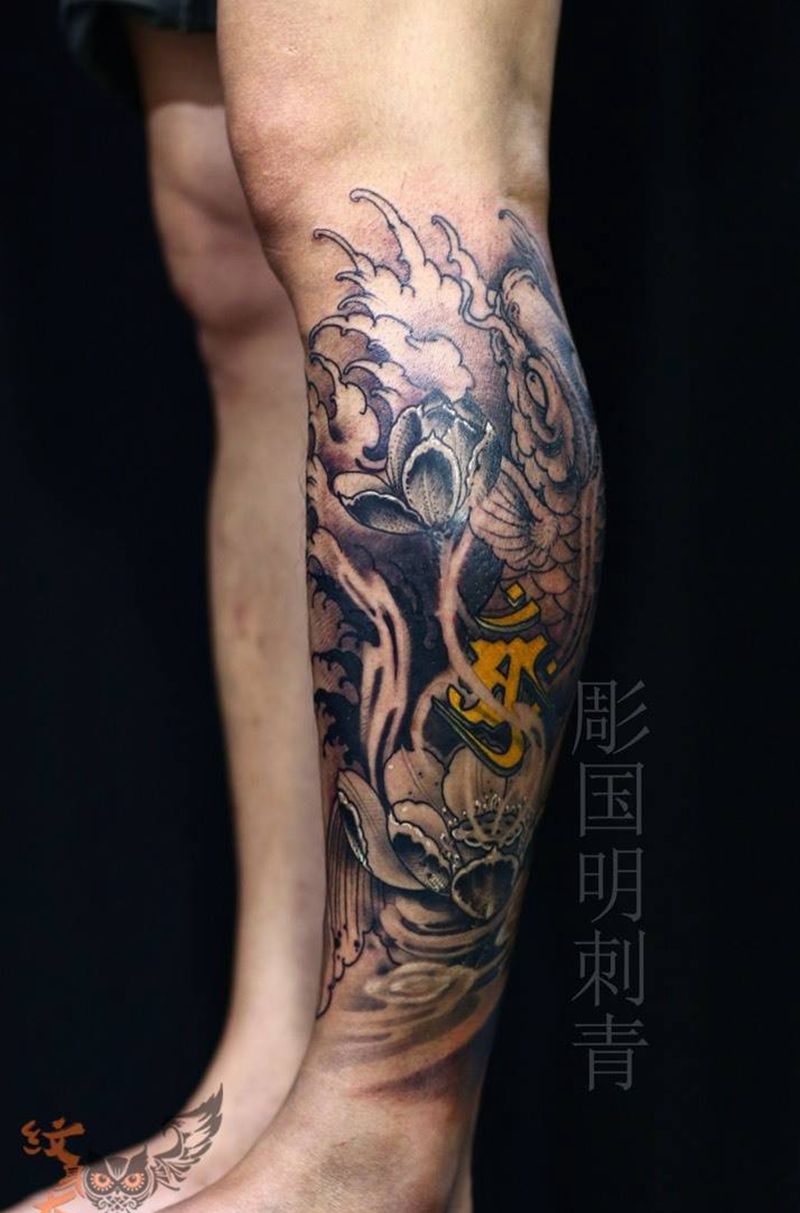 • T网红王老大花腿龙纹身图片_腿部新传统纹身图案