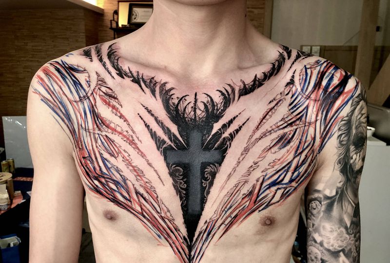 • 男性大花胸_42张优秀的男性大花胸纹身图案图片