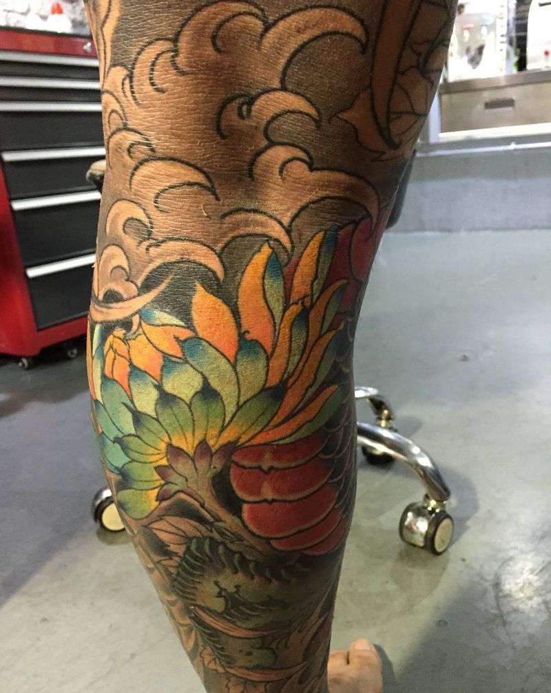 • T网红王老大花腿龙纹身图片_腿部新传统纹身图案