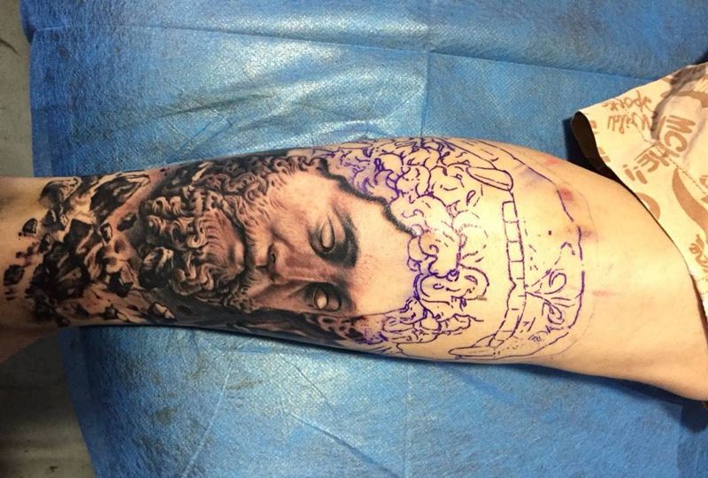 雕塑纹身图片_人物肖像写实腿部手臂背部欧美纹身图案