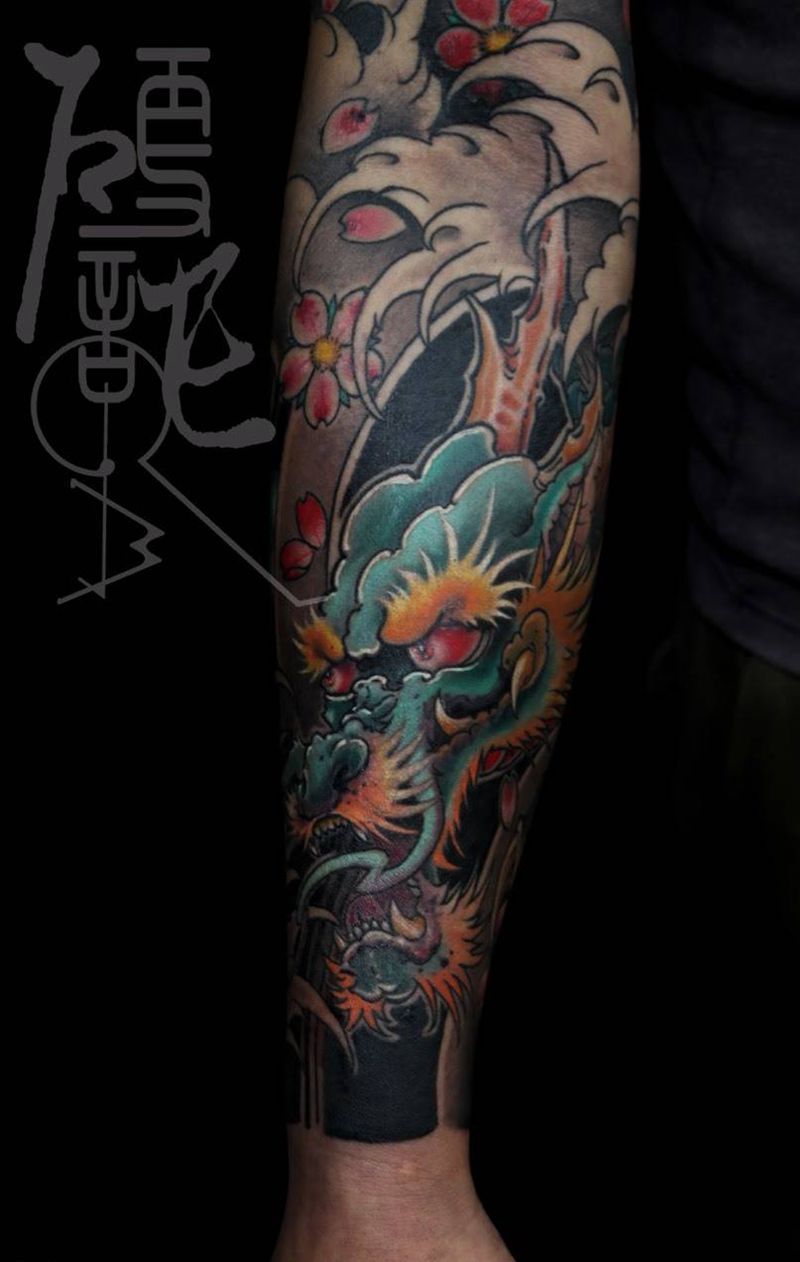 • T网红王老大花腿龙纹身图片_腿部新传统纹身图案