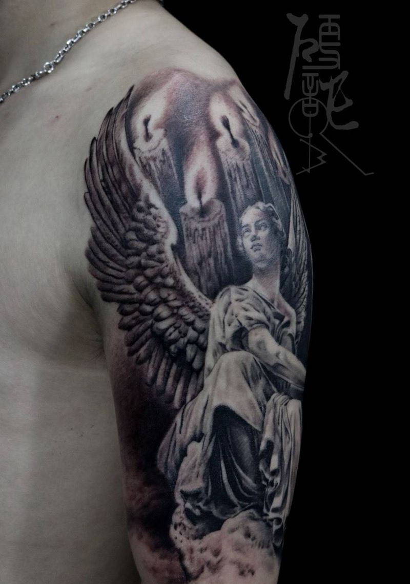 • 纹身吧推荐的披肩图腾半胛纹身图案作品展示