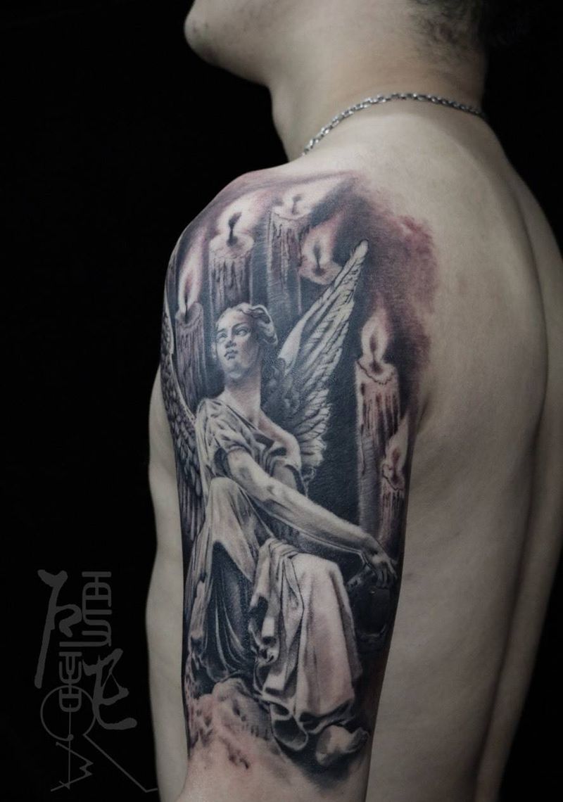 • 纹身吧推荐的披肩图腾半胛纹身图案作品展示