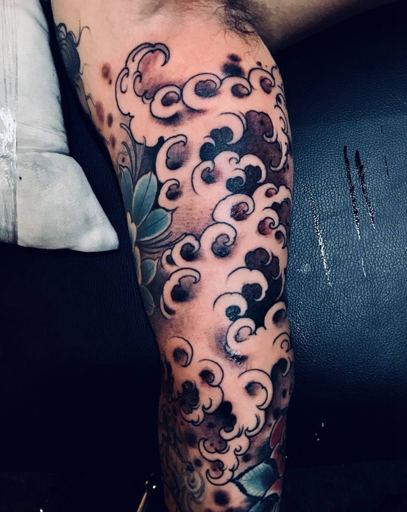 • T网红王老大花腿龙纹身图片_腿部新传统纹身图案