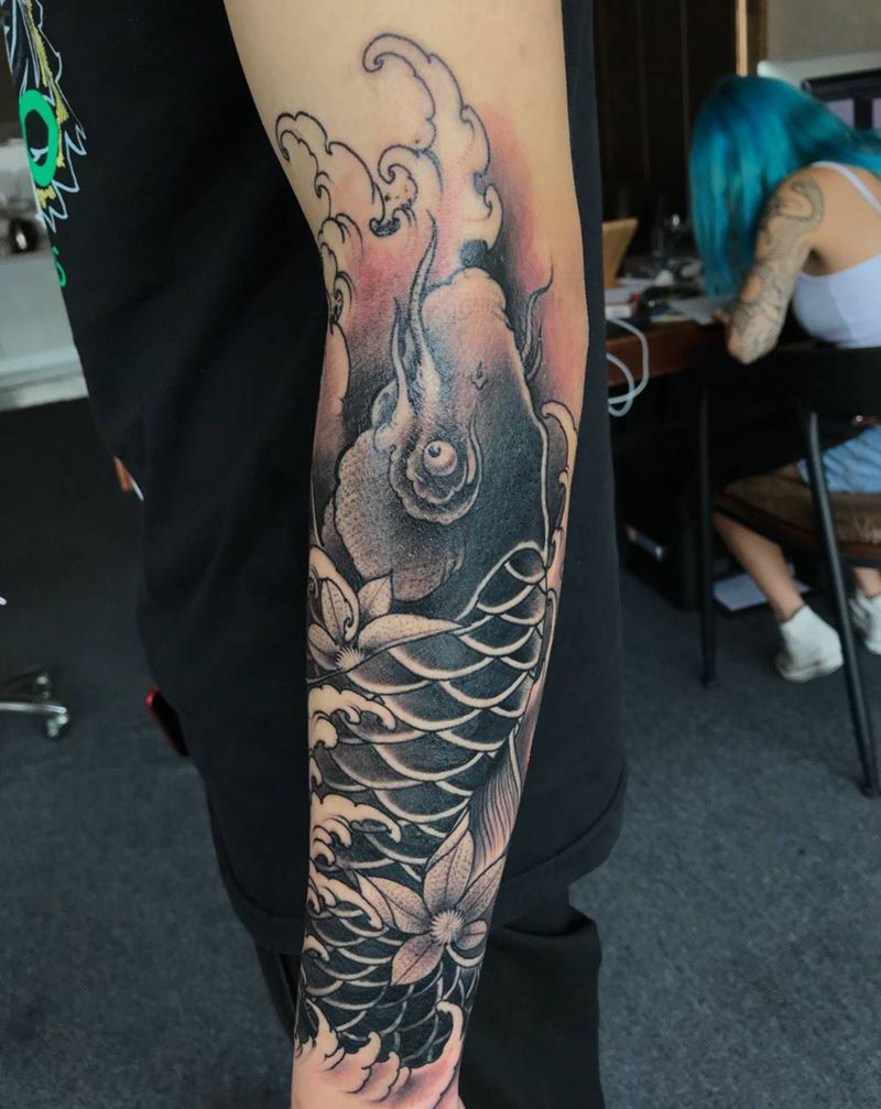 当前位置: 首页 >广东省深圳市纹身店-硬记刺青纹身图案>鲤鱼纹身图片_传统臀部手臂手部动物纹身图案