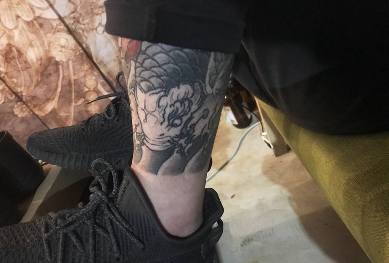 • T网红王老大花腿龙纹身图片_腿部新传统纹身图案