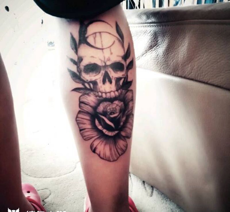 当前位置: 首页 >广东省深圳市纹身店-深圳节奏刺青纹身图案>骷髅与花纹身图片