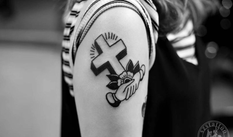 • H5款精美的小型十字架纹身 迷你纹身图案