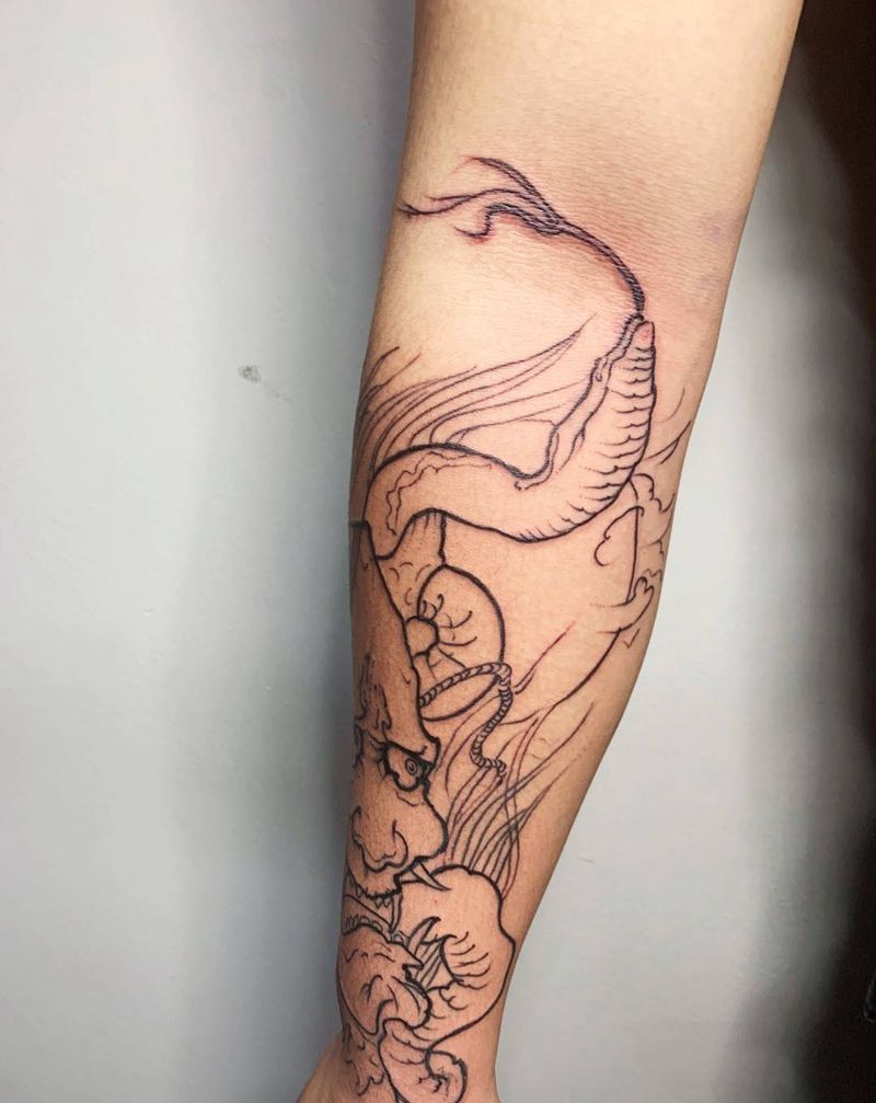 • T网红王老大花腿龙纹身图片_腿部新传统纹身图案